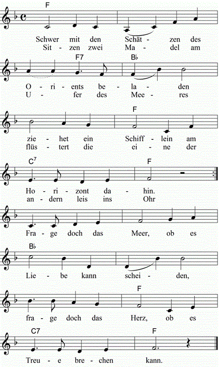 ziehet ein Schifflein am Horizont dahin.